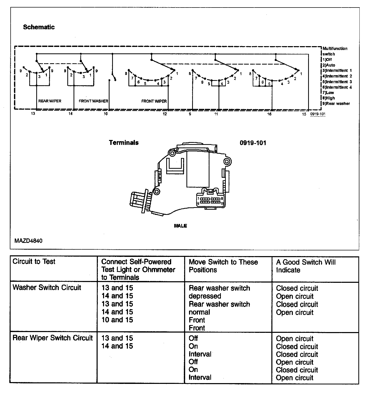 COMPONENT TEST - MULTIFUNCTION SWITCH