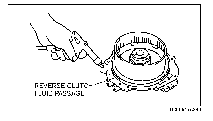 2. Remove the reverse piston from the 2-4 brake drum by applying compressed air through the fluid passage.
