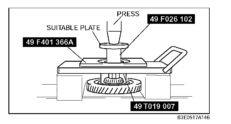 Remove the bearing from the primary gear using the SSTs and suitable plate.