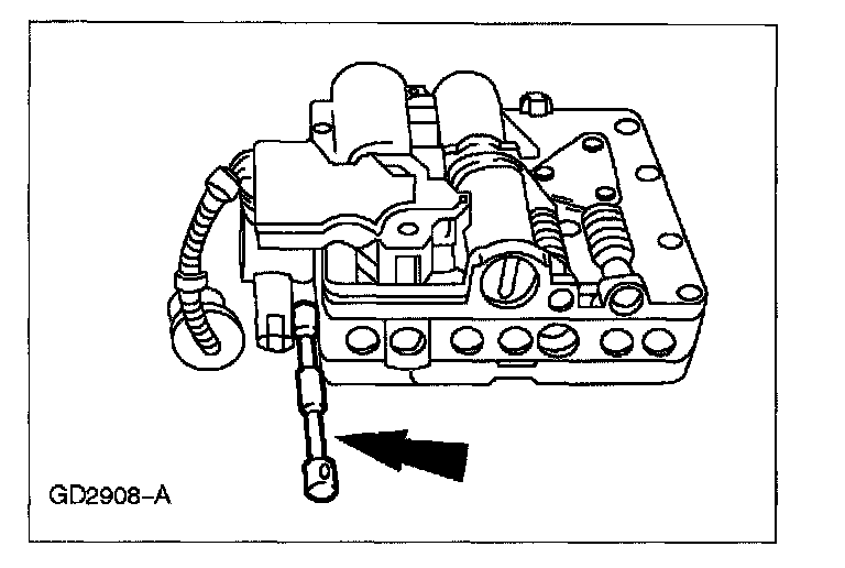 2. Remove the 2 solenoid valve body bolts and the solenoid valve body.