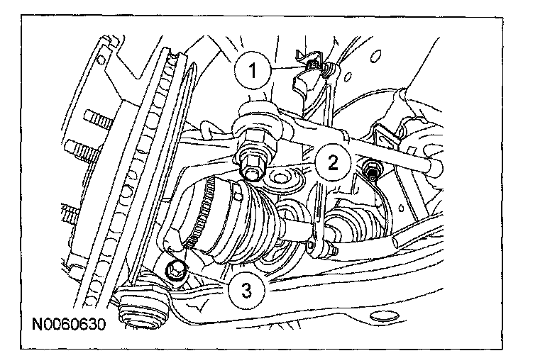 31. Remove the brake hose retainer and the ABS sensor retaining bolt from the LH strut.