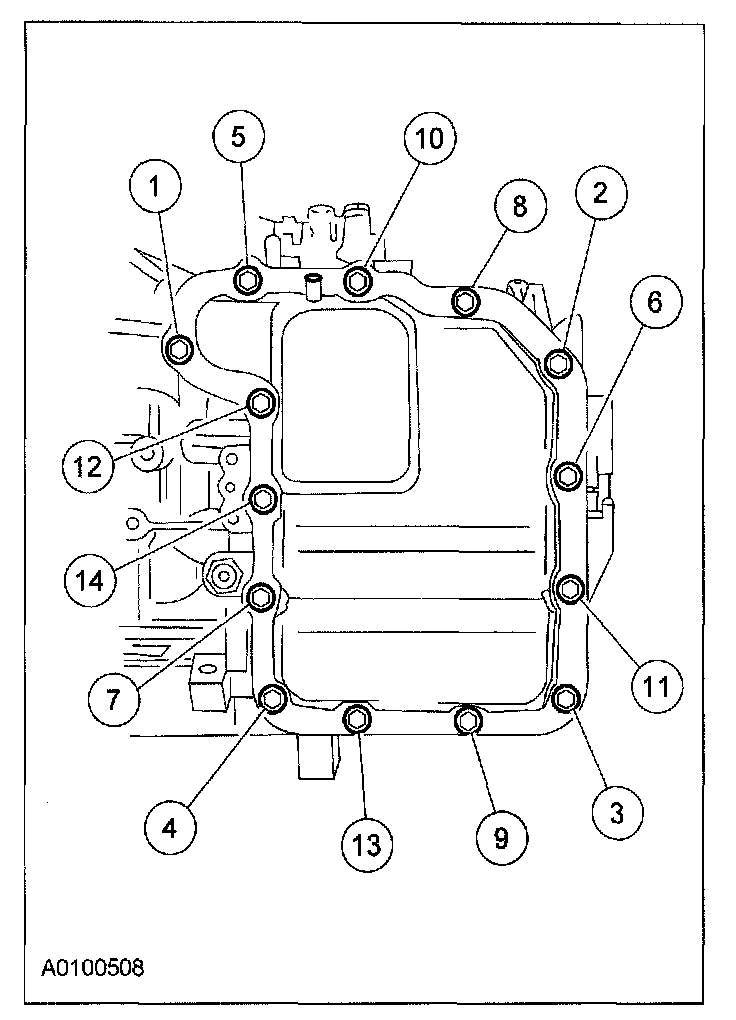 Tighten the bolts and studs in the indicated sequence to 13 N-m (1.3 kgf-m, 10 ft-lbf).