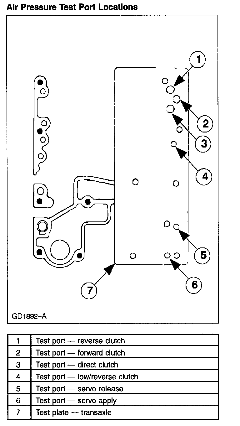 3. The inoperative clutches can be located by applying air pressure into the appropriate clutch port. See the Air Pressure Test Port Locations diagram.