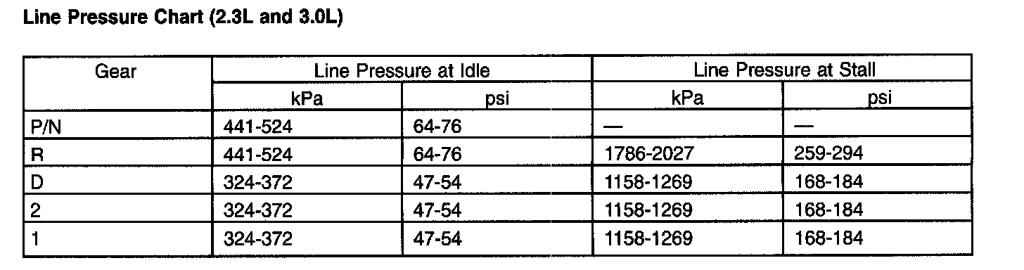 Line Pressure Chart (2.3L and 3.0L)