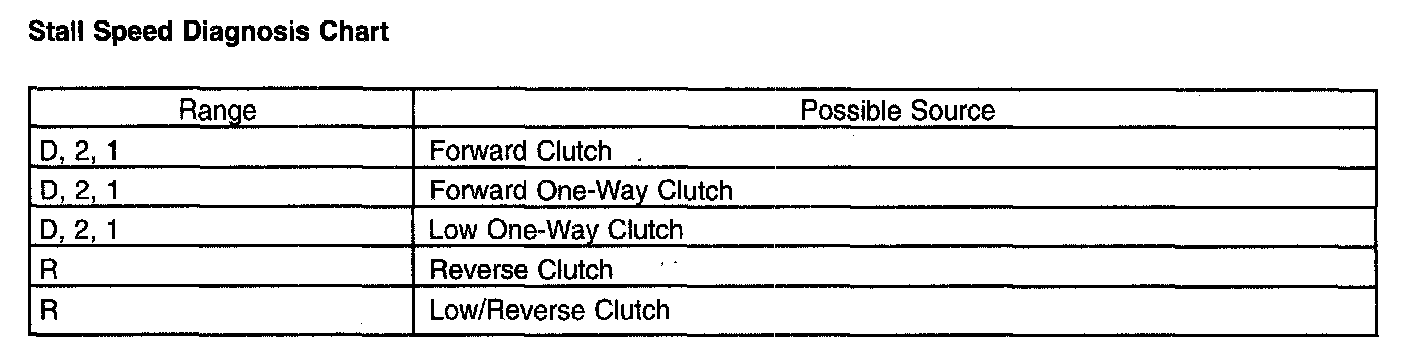 Stall Speed Diagnosis Chart