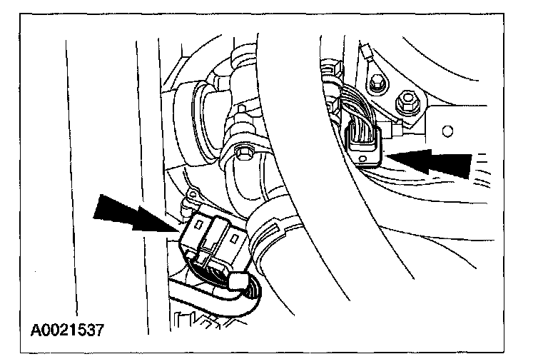 6. Disconnect the transaxle wiring harness electrical connector and the transaxle range (TR) sensor electrical connector.