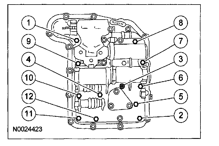 4. Install the main control valve body assembly. Tighten the bolts in the sequence indicated.