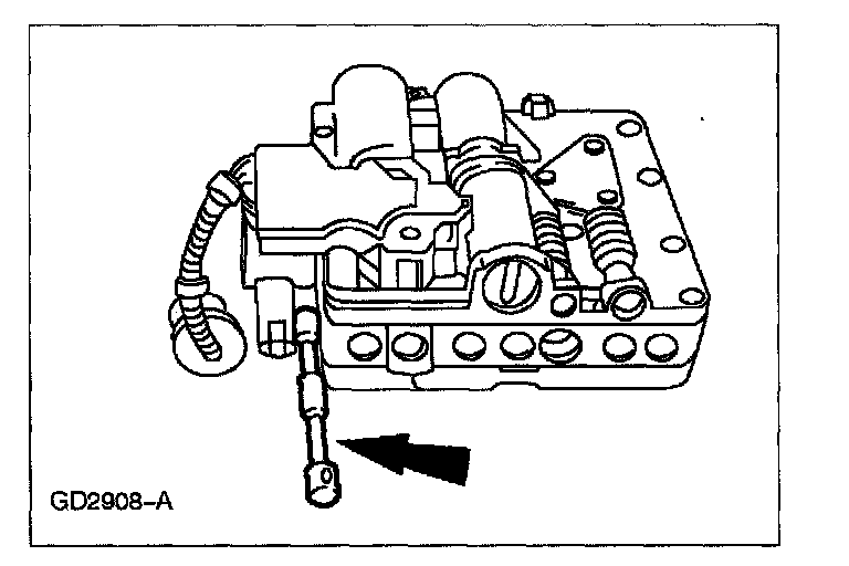 17. Make sure the manual valve control lever does not fall out of the main control valve body while removing it from the vehicle.