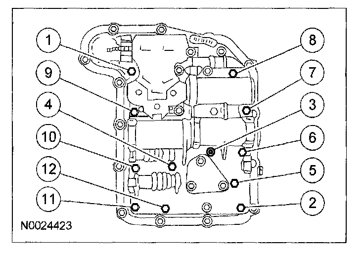 14. Remove the main control valve body bolts in the sequence shown.
