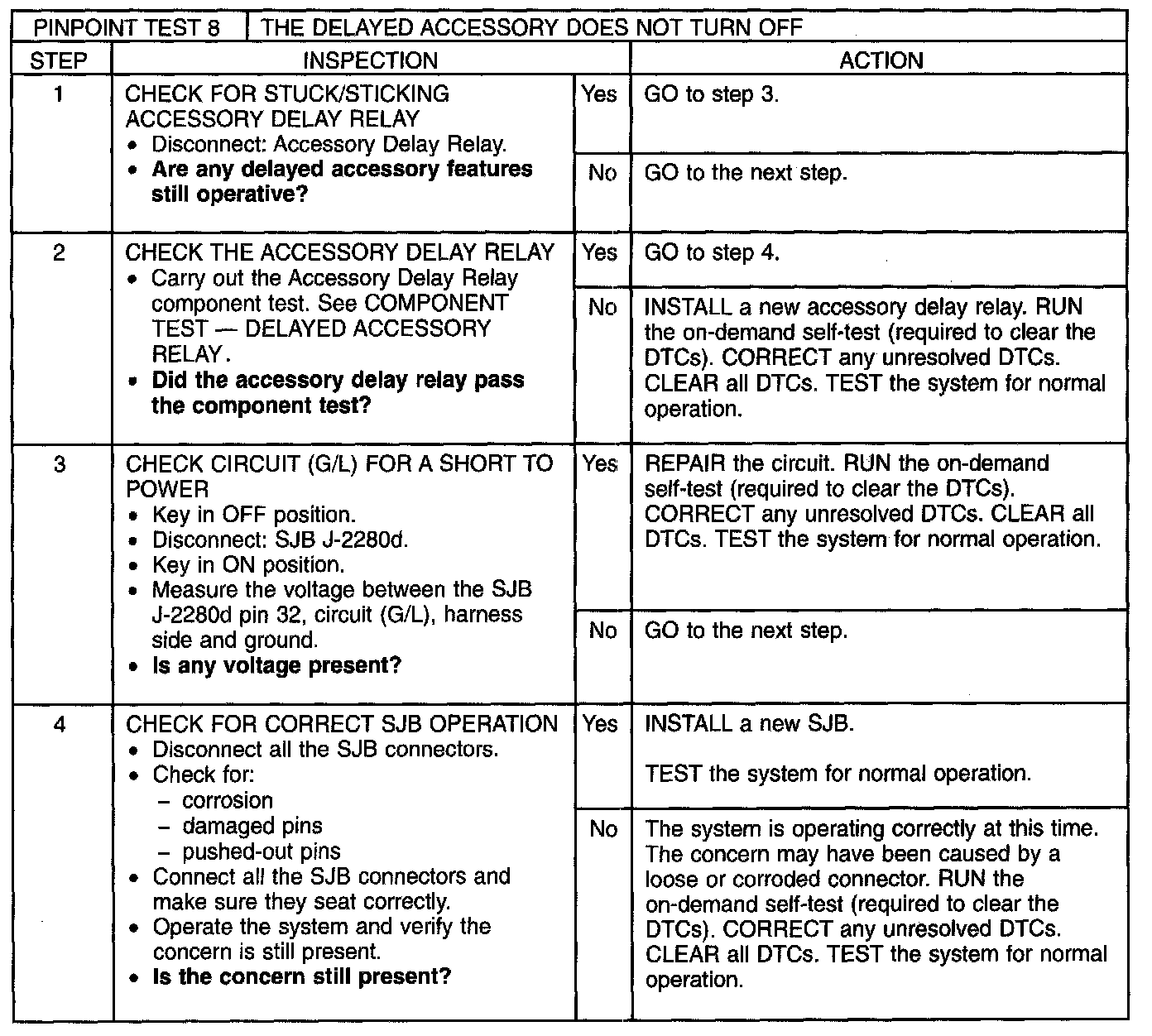PINPOINT TEST 8: THE DELAYED ACCESSORY DOES NOT TURN OFFNormal Operation