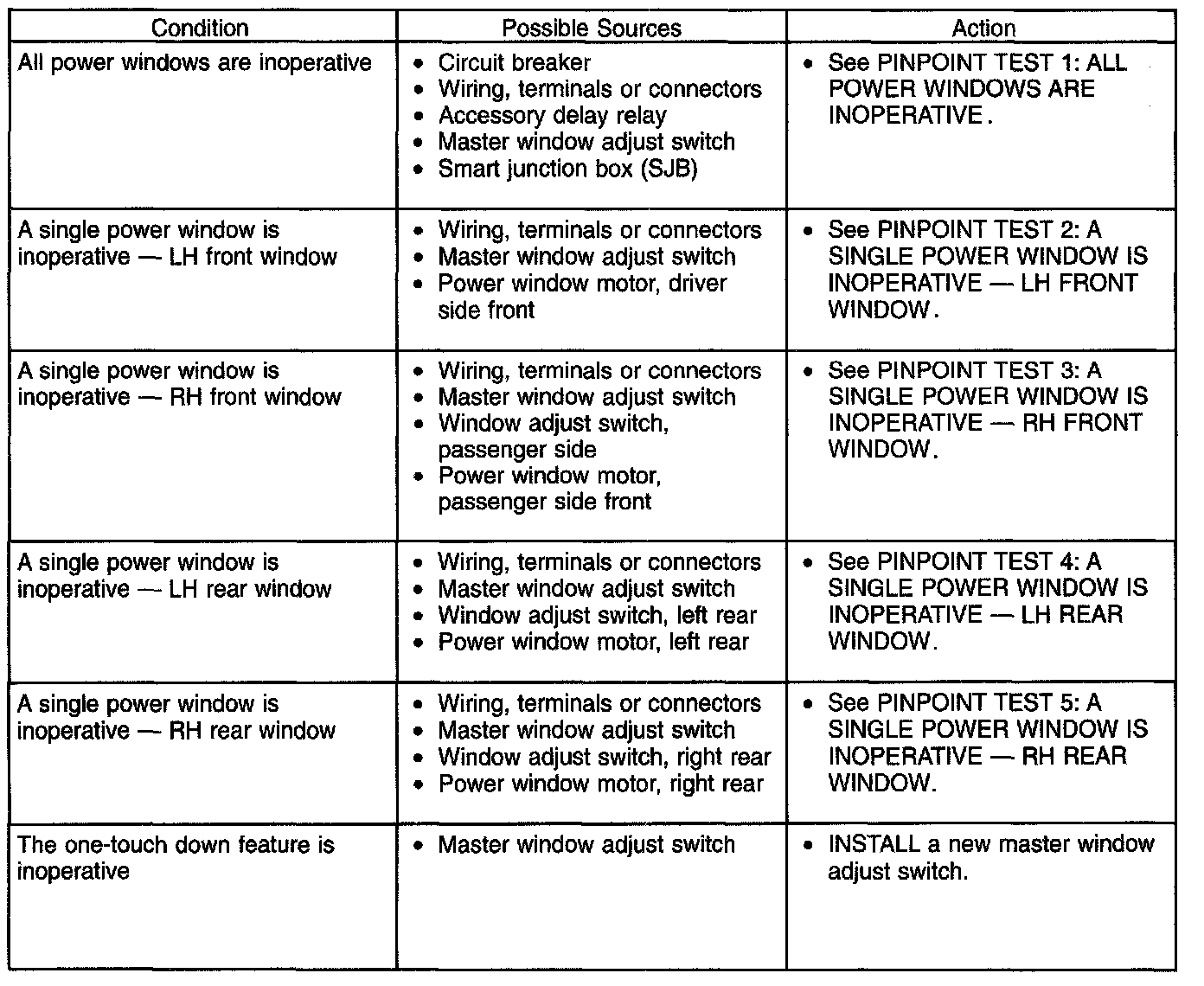Symptom Troubleshooting Chart-Power Windows (Part 1):
