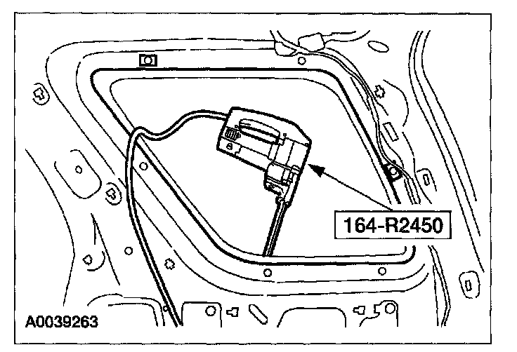 4. Using the special tool, cut the urethane adhesive from the quarter window glass starting at the top center and working toward the bottom corners and remove the rear quarter window glass.