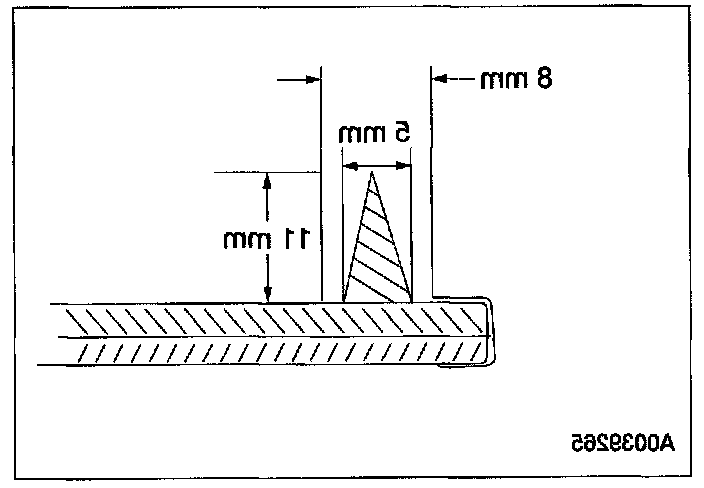 2. Trim the remaining urethane adhesive on the pinch weld to within the specification.