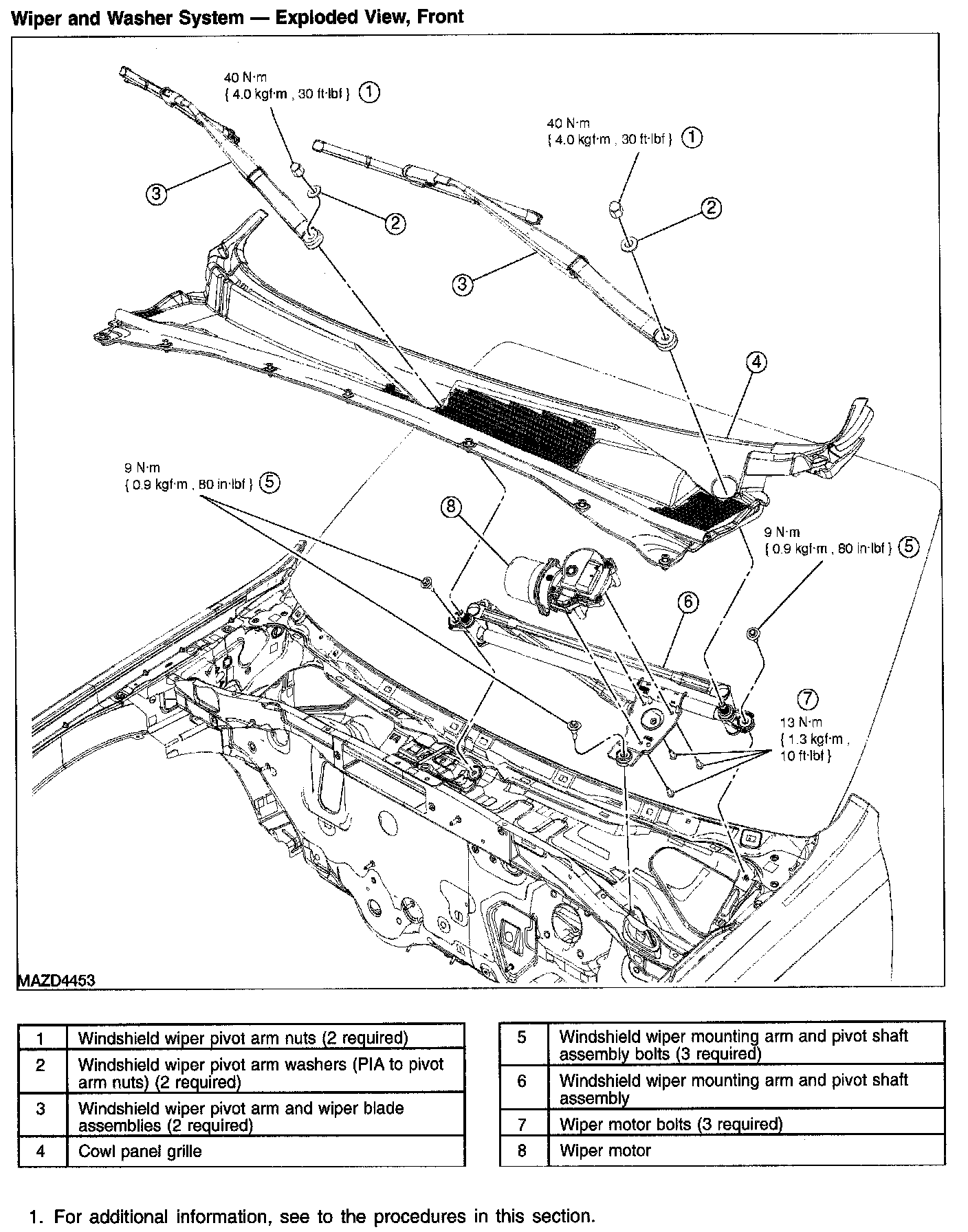 Wiper and Washer System - Exploded View, Front