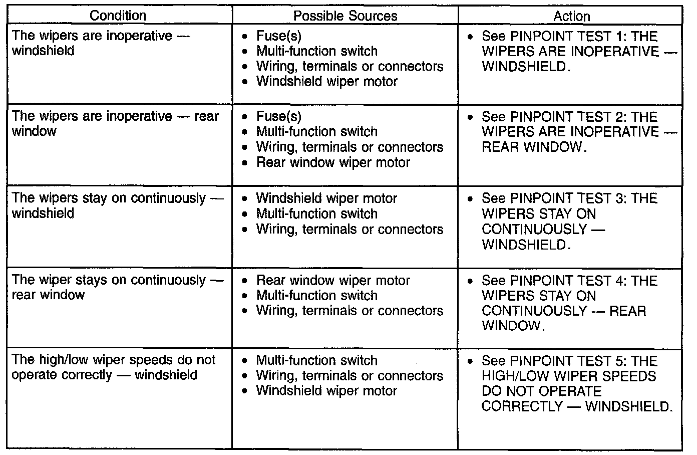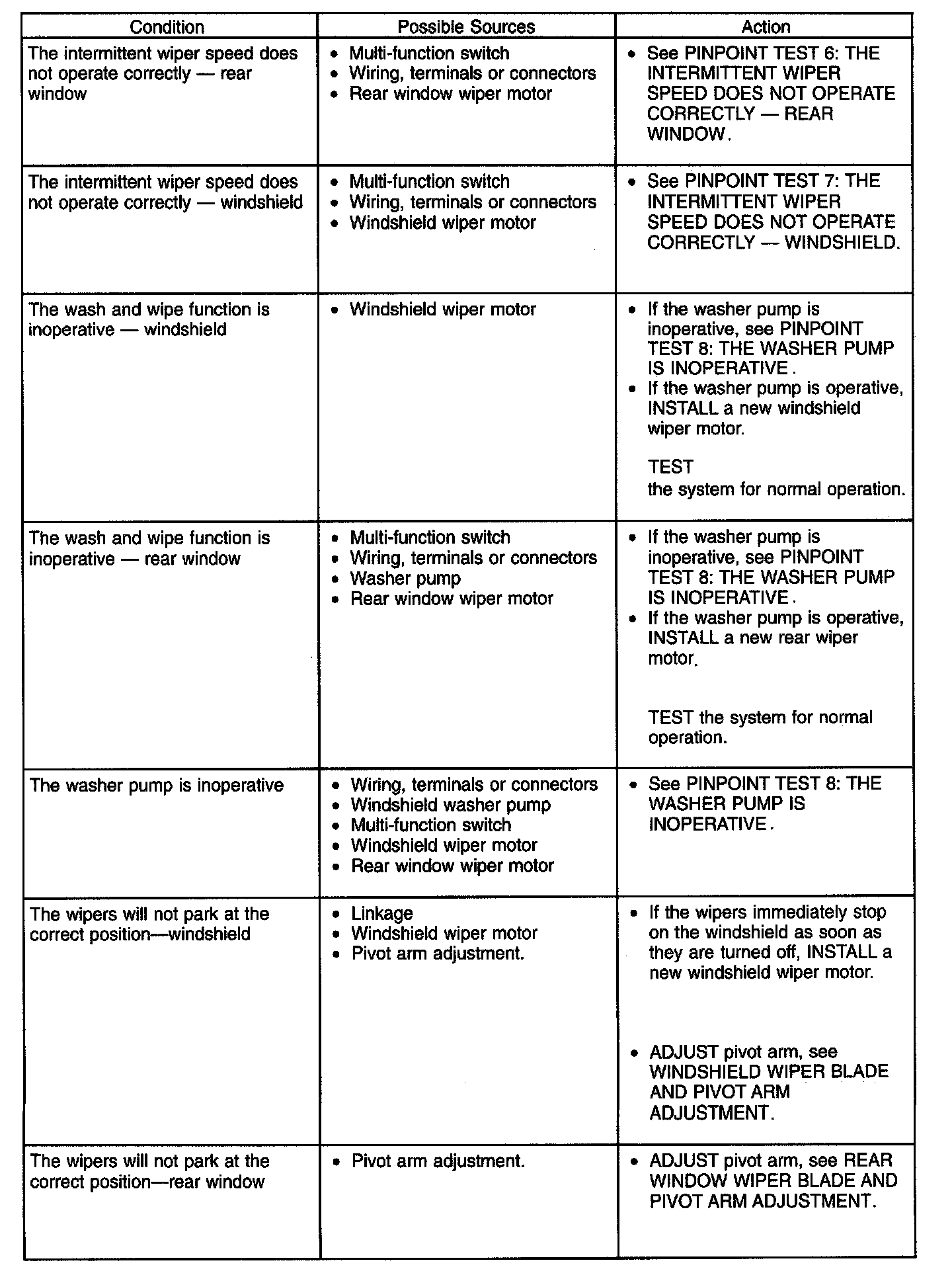 Symptom Troubleshooting Chart-Wipers And Washers (Part 2):