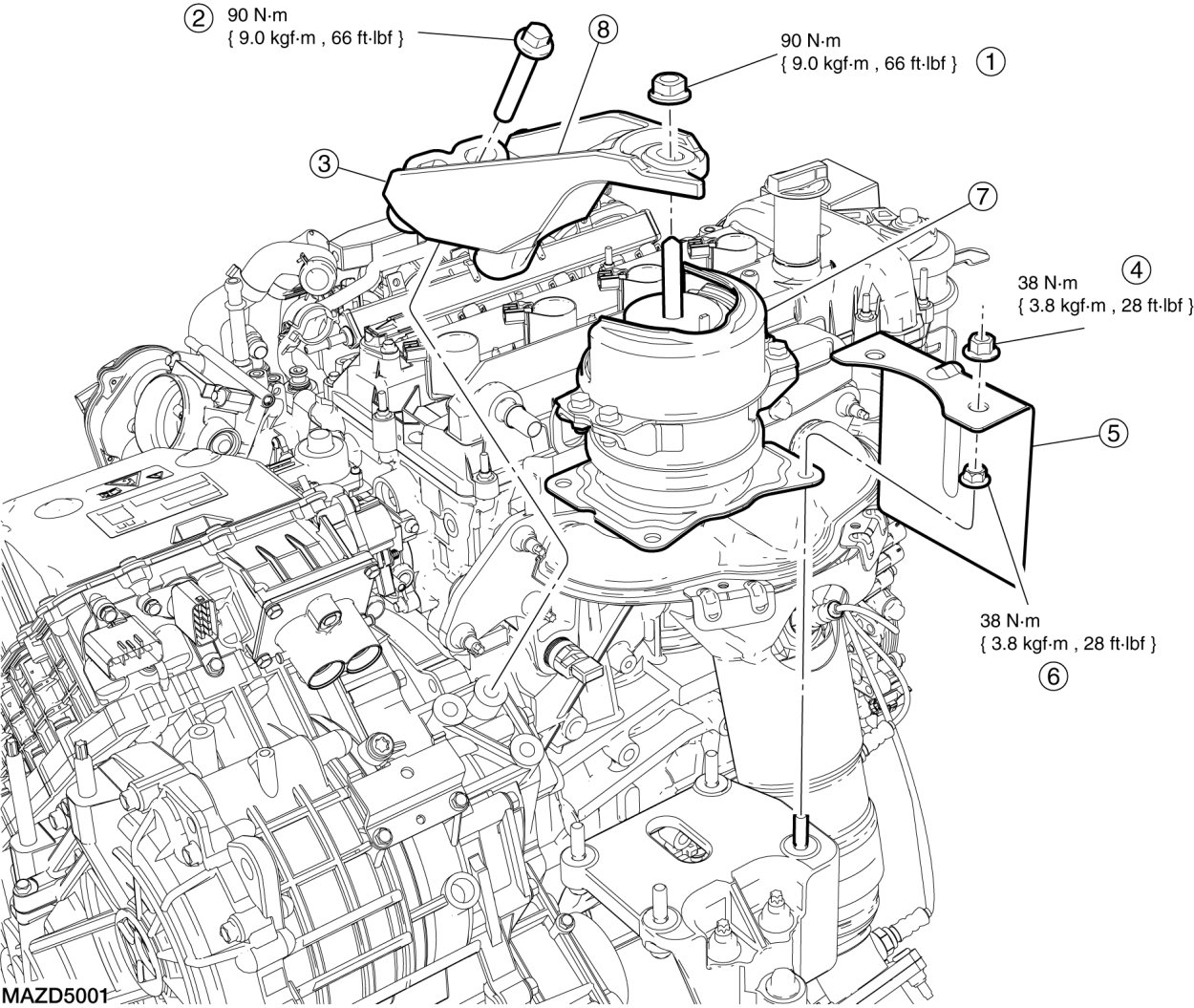 TRANSAXLE SUPPORT INSULATOR AND RETAINER EXPLODED VIEW - HYBRID