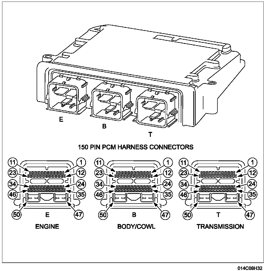 The center of the electronic engine control (EEC) system is a microprocessor called the PCM. The PCM receives input from sensors and other electronic components. Based on information received and programmed into its memory, the PCM generates output signals to control various relays, solenoids, and actuators. The hybrid vehicle uses a 150-pin PCM which has 3 separate electrical harness connectors.