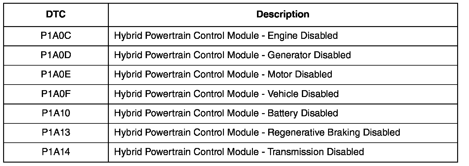 - The TCM reports the generator error status to the PCM. The PCM initiates an appropriate limited operating strategy (LOS) mode and sets the diagnostic trouble code (DTC) P1A0D (Hybrid powertrain control module - generator disabled) based on the error status it received. The TCM also sets a DTC which indicates why the generator motor failed.