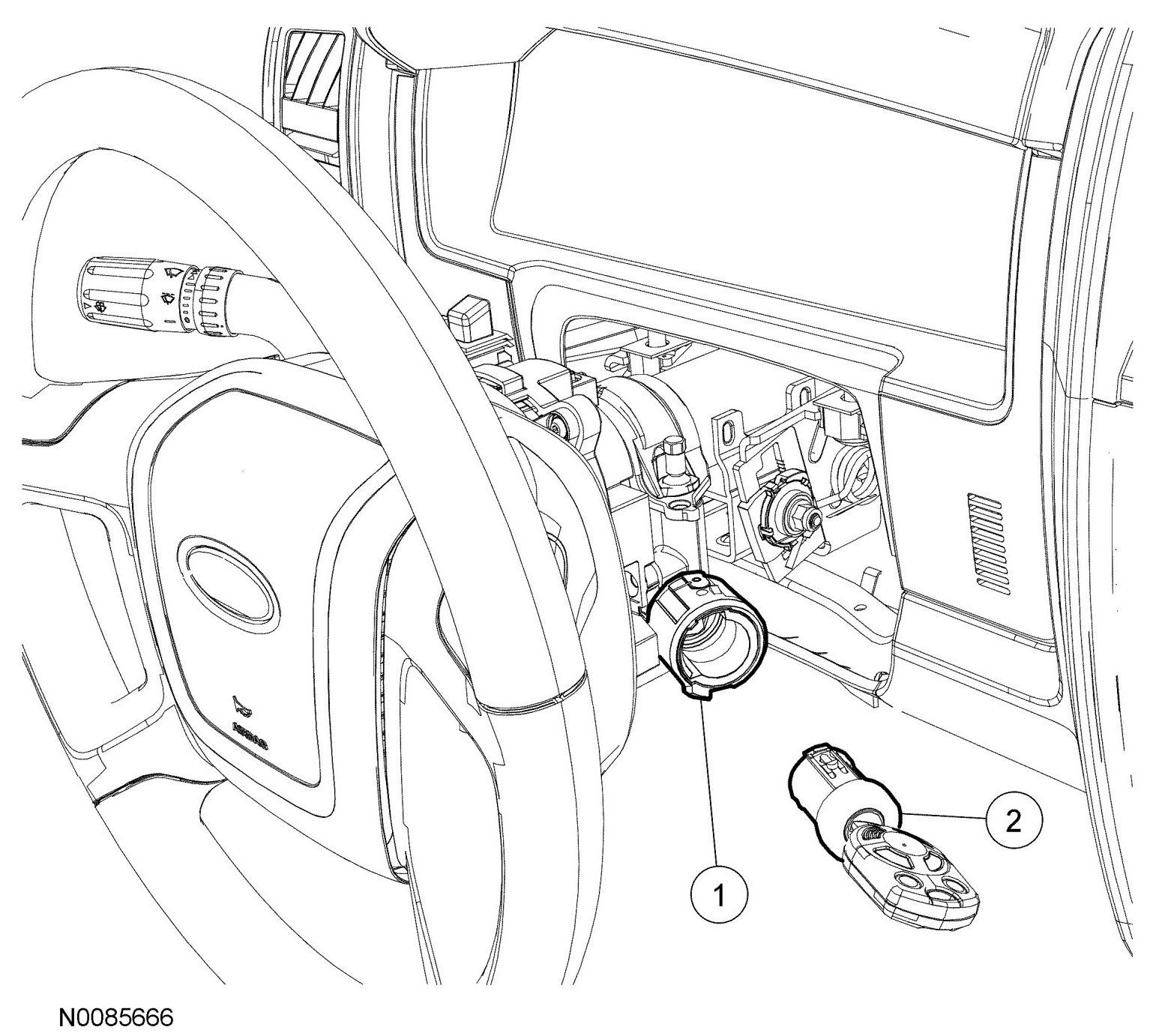 NOTE: For non-functional ignition lock cylinders, the steering column lock module has to be replaced. See Service and Repair.