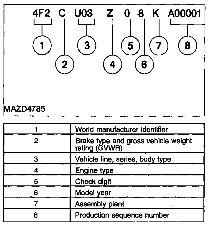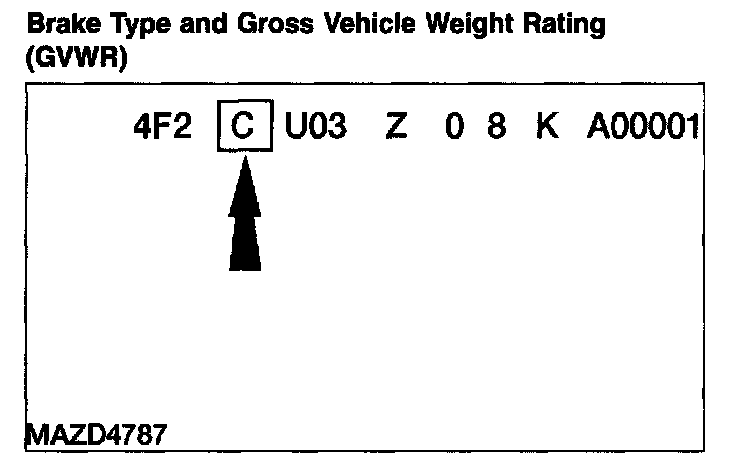 The fourth VIN position is the vehicle brake type and gross vehicle weight rating (GVWR) code, all vehicles use hydraulic brakes and driver and front passenger air bags.