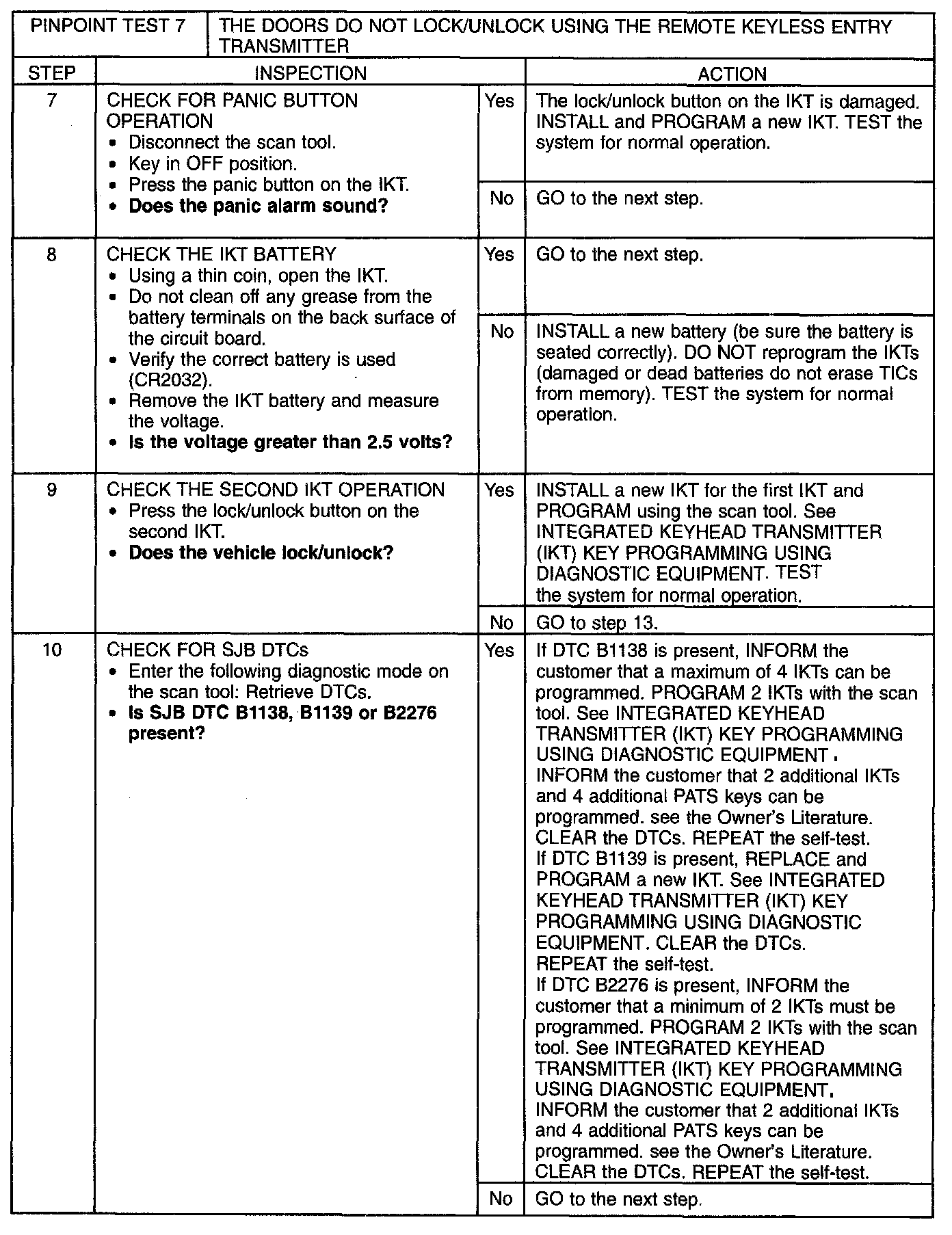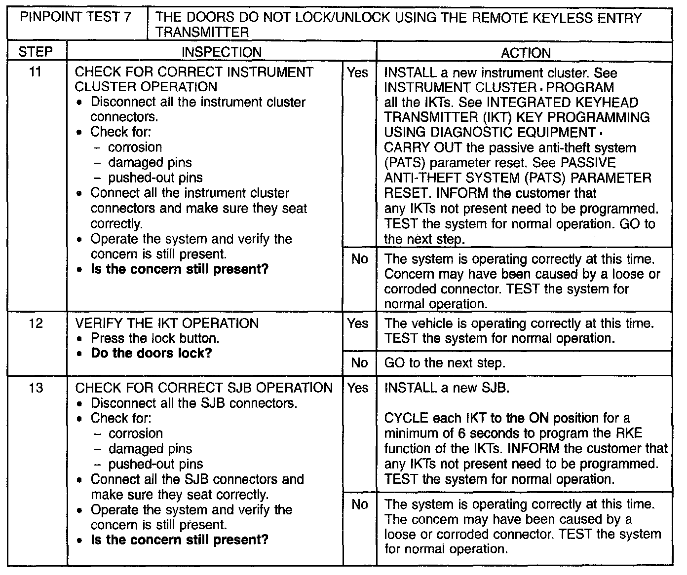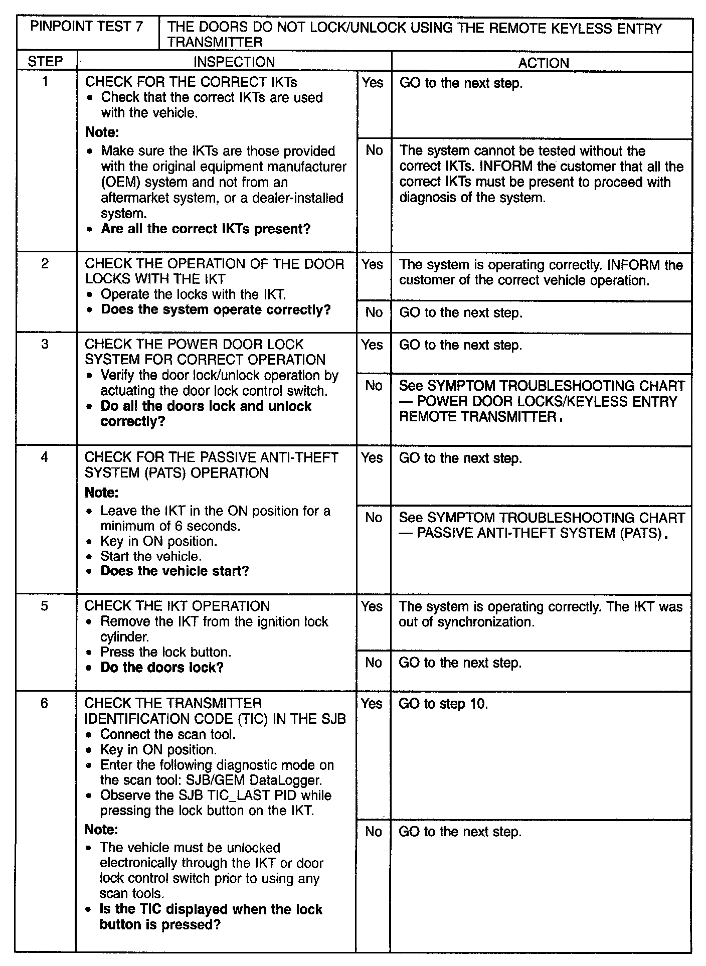 Pinpoint Test 7: The Doors Do Not Lock/Unlock Using the Remote Keyless Entry Transmitter