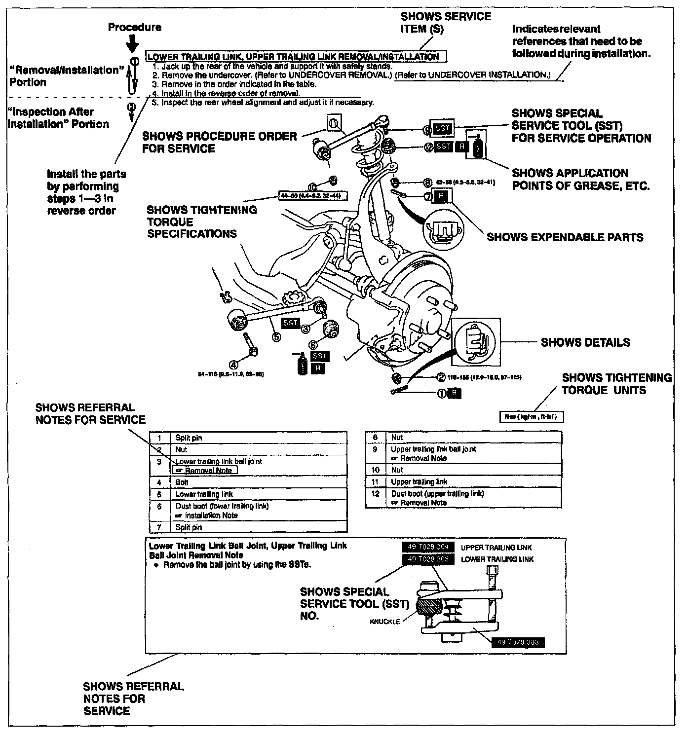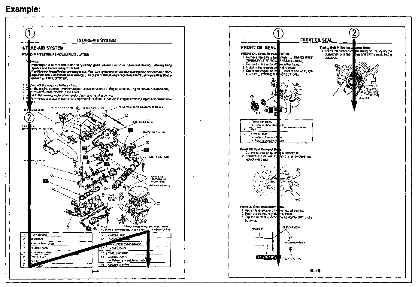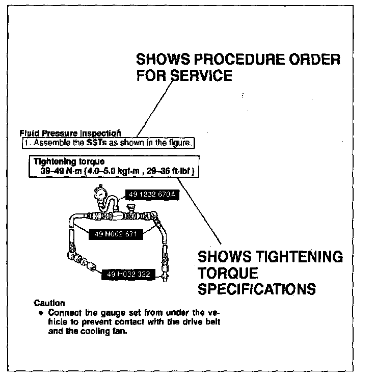 - Inspection and adjustment procedures are divided into steps. Important points regarding the location and contents of the procedures are explained in detail and shown in the illustrations.