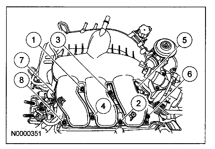 - Tighten in the sequence shown to 10 N.m {1.0 kgf.m, 89 in.lbf}.