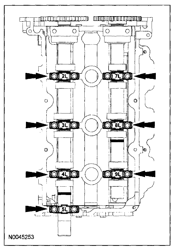 9. Install the LH and RH camshafts.