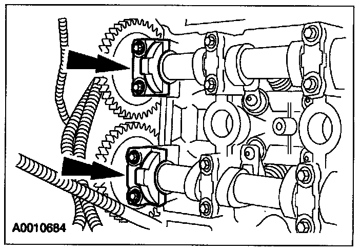 ^ Locate the camshafts as shown.