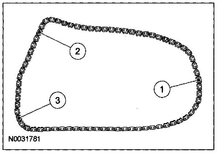 (2) Starting with the crankshaft timing mark, count 29 links and mark the link.