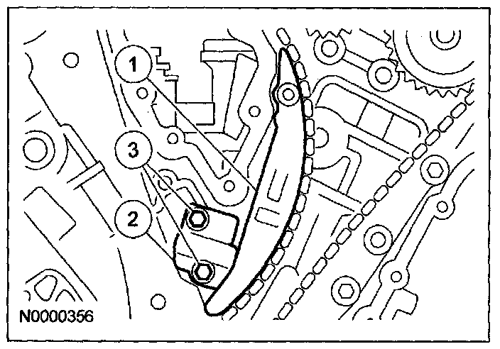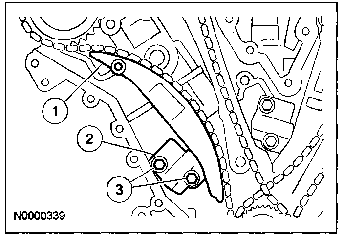 25. Position the LH timing chain and guide and install the bolts.