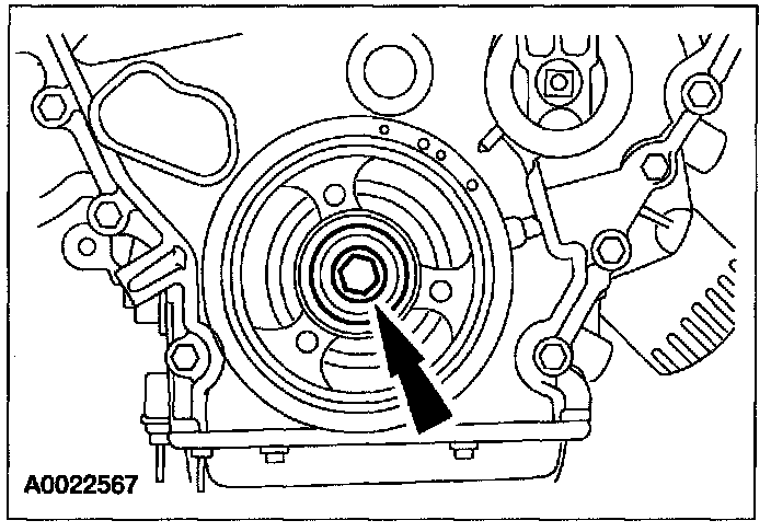 ^ Tighten the crankshaft damper bolt in 4 stages.