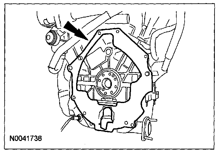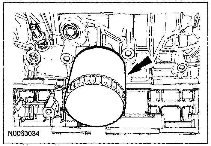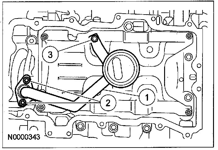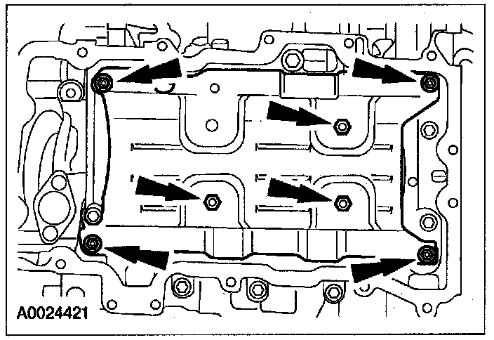 46. Position the oil pan baffle. Install the nuts and tighten in 2 stages.