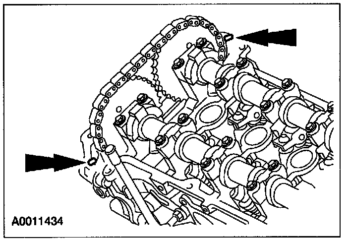 ^ Do not use any screwdrivers, pliers or other metal objects that could cause damage to the belt or camshaft pulley while installing the belt.