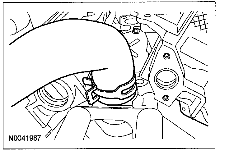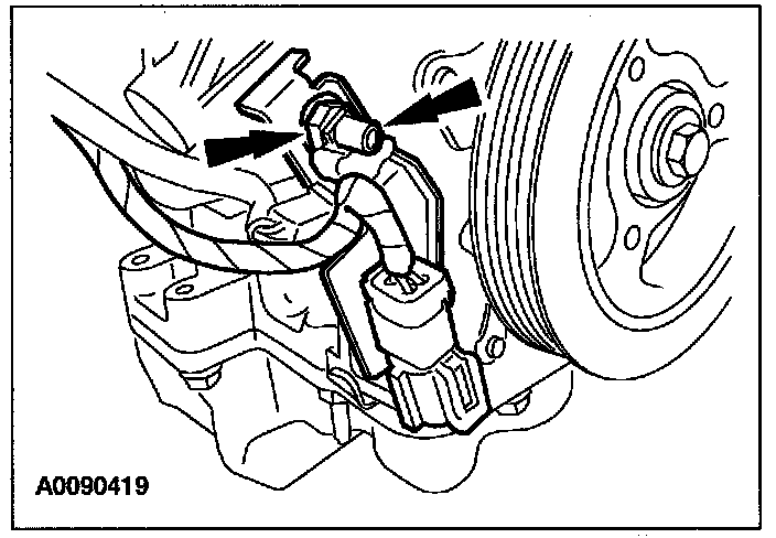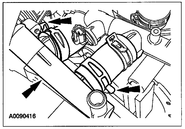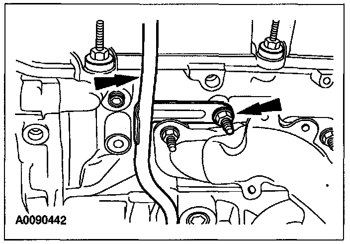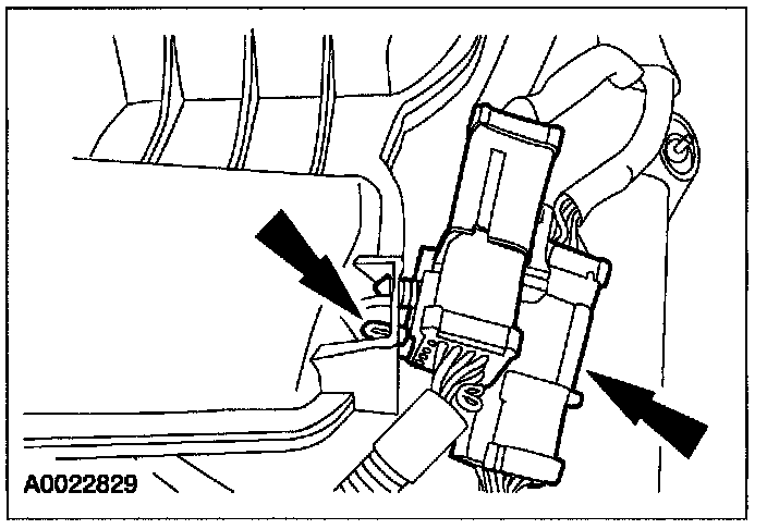 ^ Attach the 2 wiring harness retainers (1 shown) to the engine.