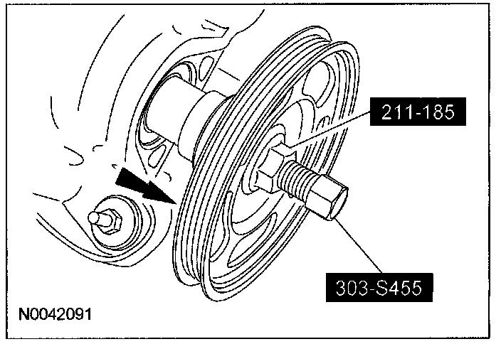 ^ The original equipment manufacturer (OEM) pulley is pressed on flush to the end of the camshaft. the service pulley is pressed on flush to the end of the camshaft.