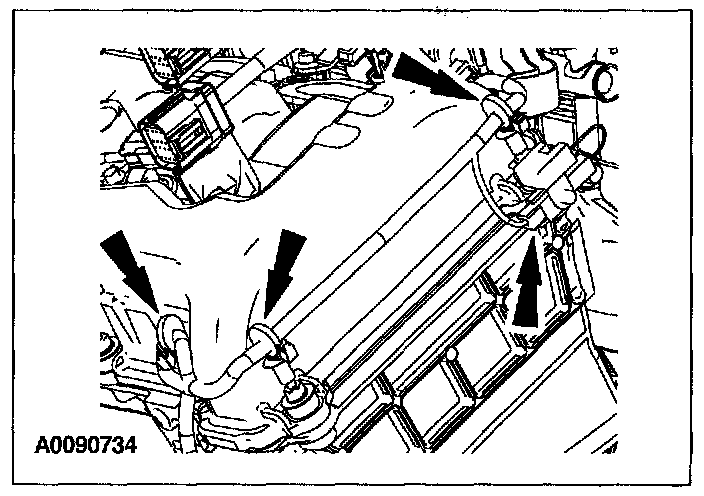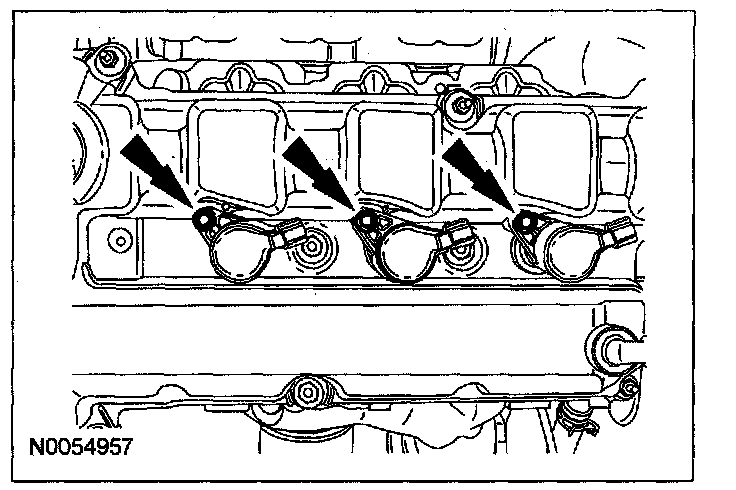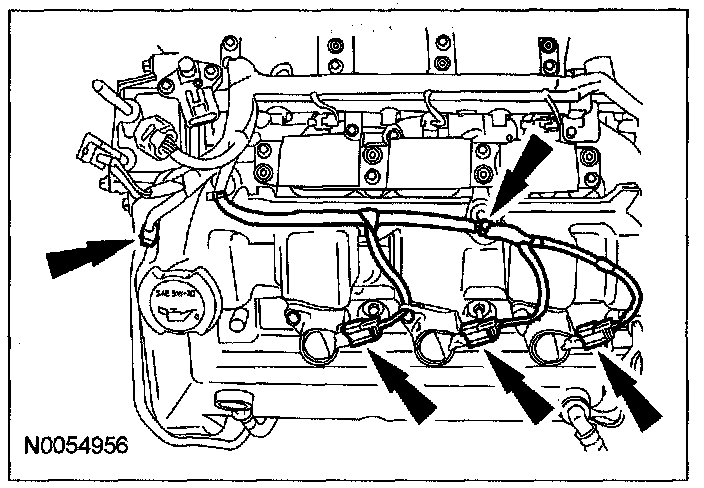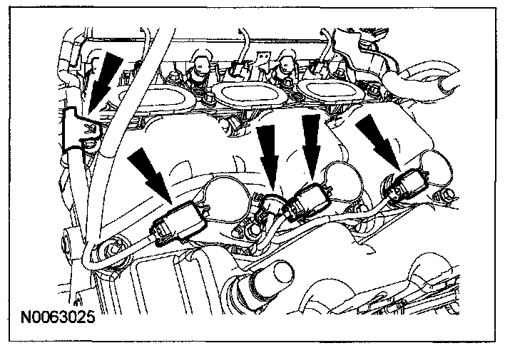 81. Connect the LH coil-on-plug electrical connectors and attach the wiring retainers.