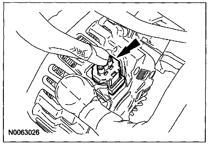 82. Connect the radio interference capacitor electrical connector and attach the wiring retainers.