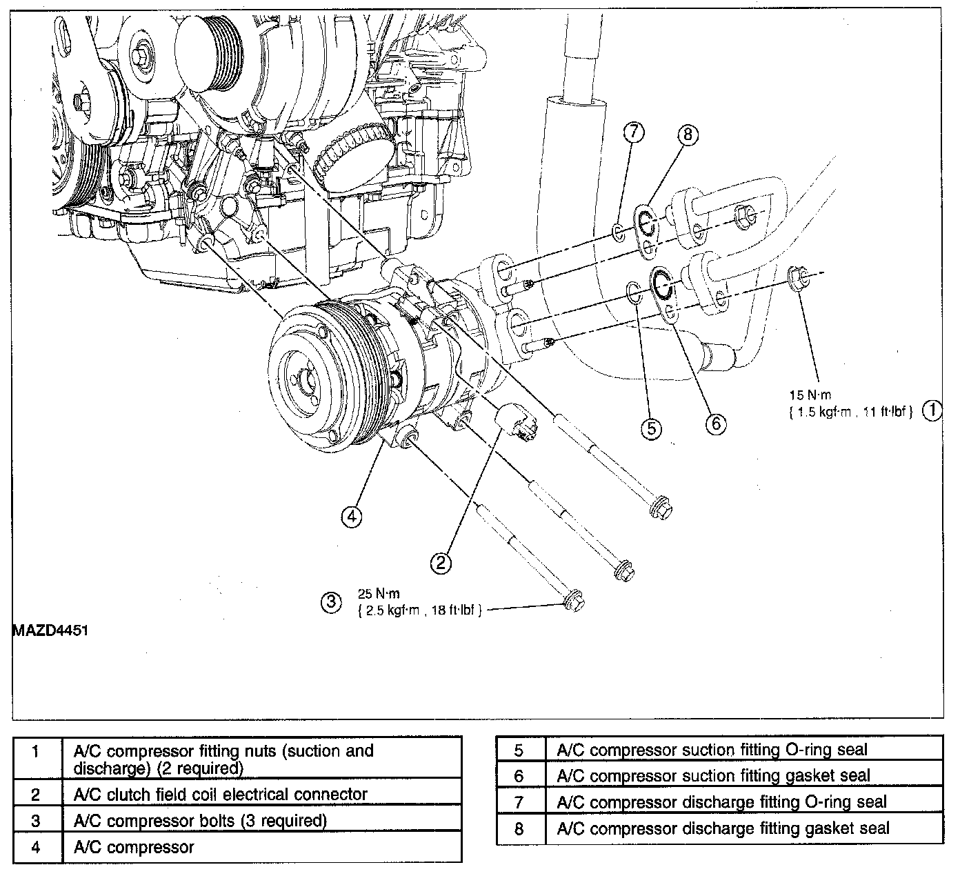 - If installing a new A/C compressor, the A/C clutch disc and hub, A/C compressor pulley and A/C clutch field coil must be inspected and transferred from the old unit to the new unit if suitable for reuse.