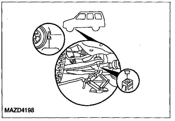 - Make sure the jack and jack stands are correctly located to prevent the vehicle from falling. Failure to follow these instructions may result in serious personal injury.