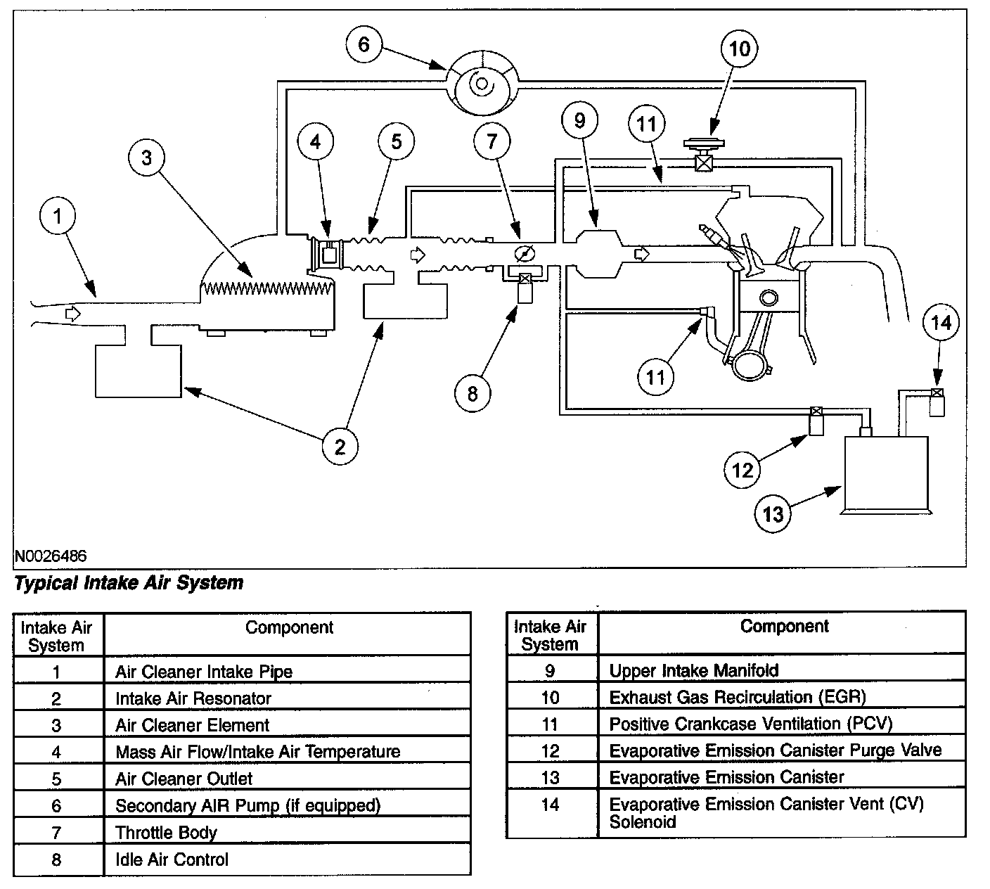 Intake air components can be separate components or part of the intake air housing. The function of a resonator is to reduce induction noise. The intake air components are connected to each other and to the throttle body assembly with hoses.