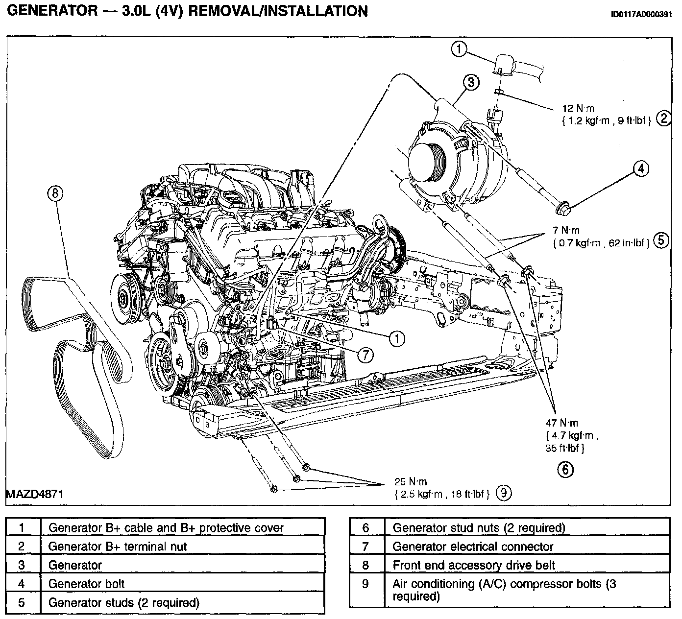 GENERATOR - 3.0L REMOVAL/INSTALLATION1. Disconnect the battery. See BATTERY DISCONNECT.