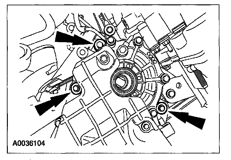 46. Install the 4 upper transaxle retaining bolts.