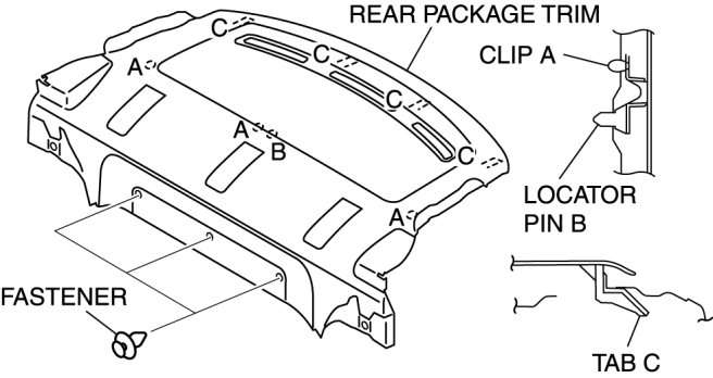 4. Detach tabs C from the body and remove the rear package trim.