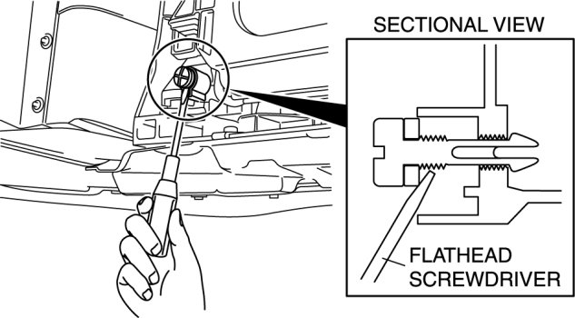 - Do not apply excessive force to the flathead screwdriver or equivalent as doing so can damage the drain bore. Slowly and carefully pry out the radiator drain plug when removing it.