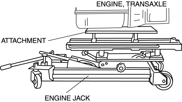 4. To firmly support the engine, first set the engine jack and attachment to the oil pan.