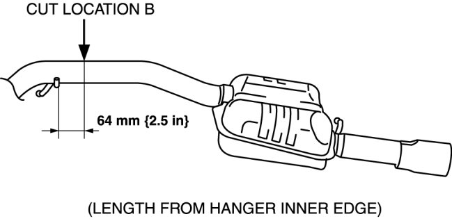 3. Cut the pipe between the main silencer and tailpipe using the following procedure. (Cut location B)