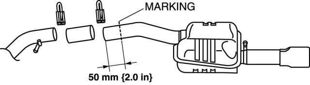b. Measure the indicated length from the cut surface of the tailpipe to the marking.