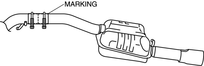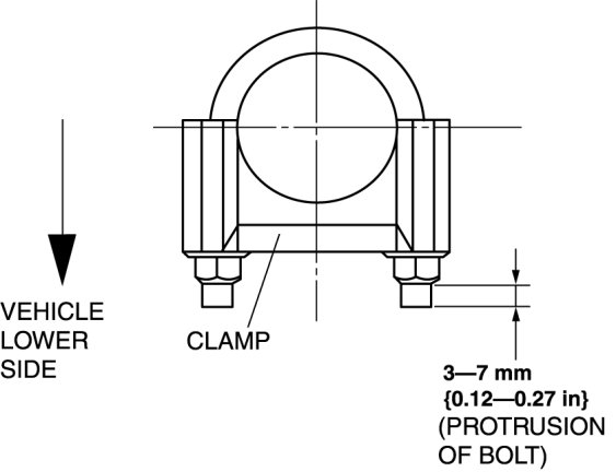 d. Gradually tighten the U-shaped bolt on the after silencer side verifying that the after silencer end is at the center of the bumper as viewed from behind the vehicle.
