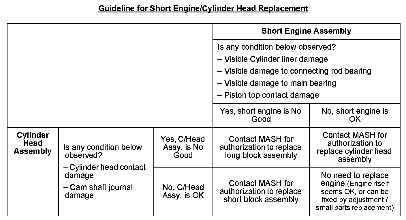 - If no good, contact MASH for authorization to replace cylinder head assembly and related damaged components.